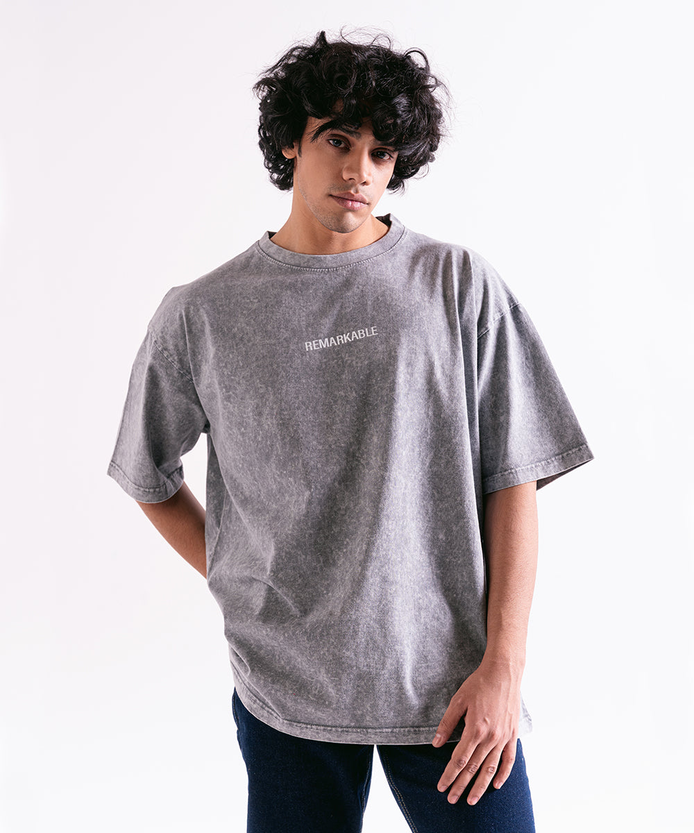 Oversized Grey Acid Wash T-Shirt For Men - S